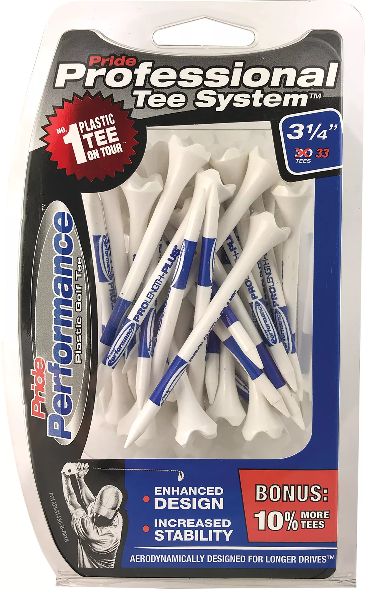 Pride® Professional Tee System™ Evolution 3.25″ Golf Tees are plastic performance tees engineered with special low-resistance tips that create less friction between the golf ball and tee resulting in longer drives.