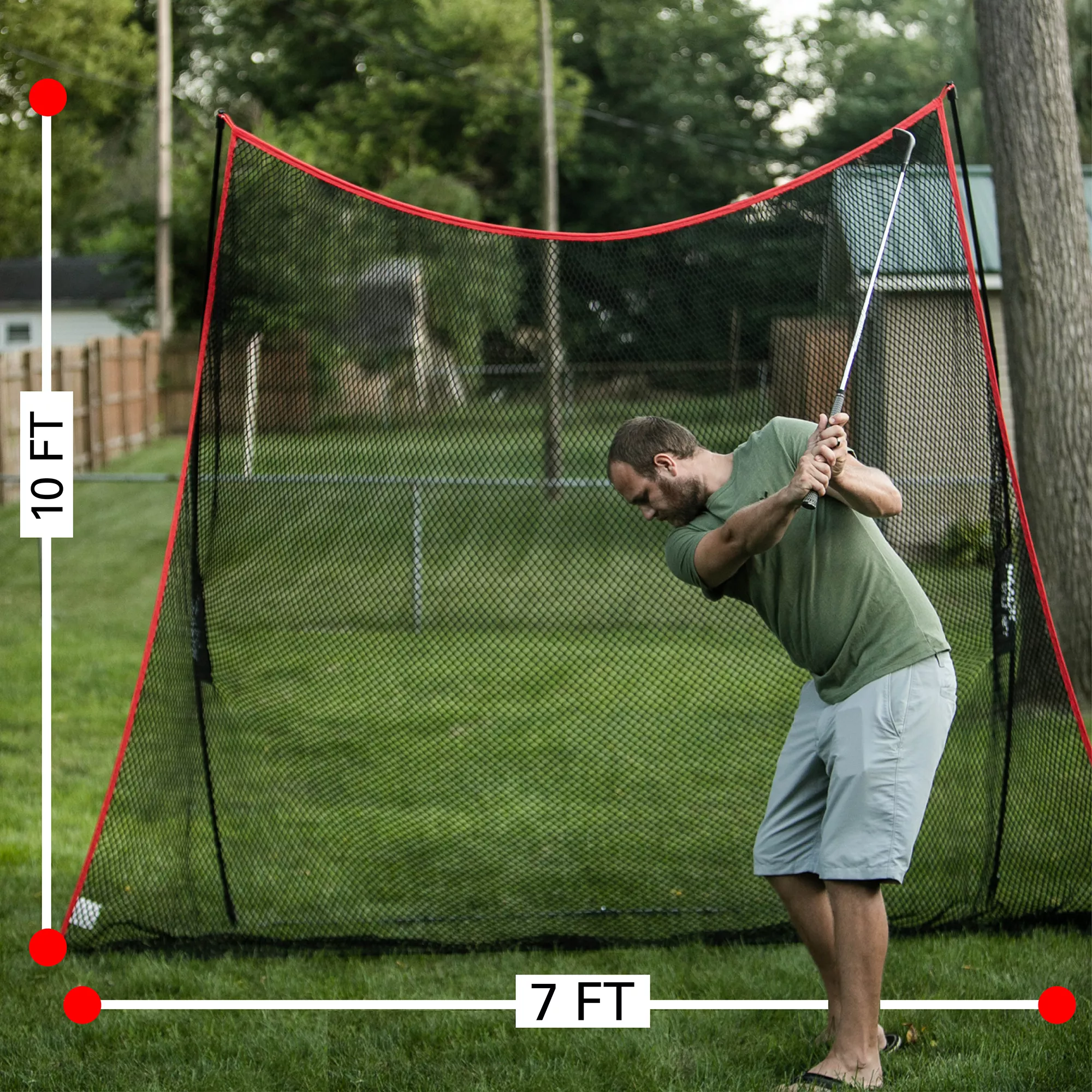 - Large area to collect even an errant shot at 10ft W x 7ft H x 3ft D. Safely swing inside or outside