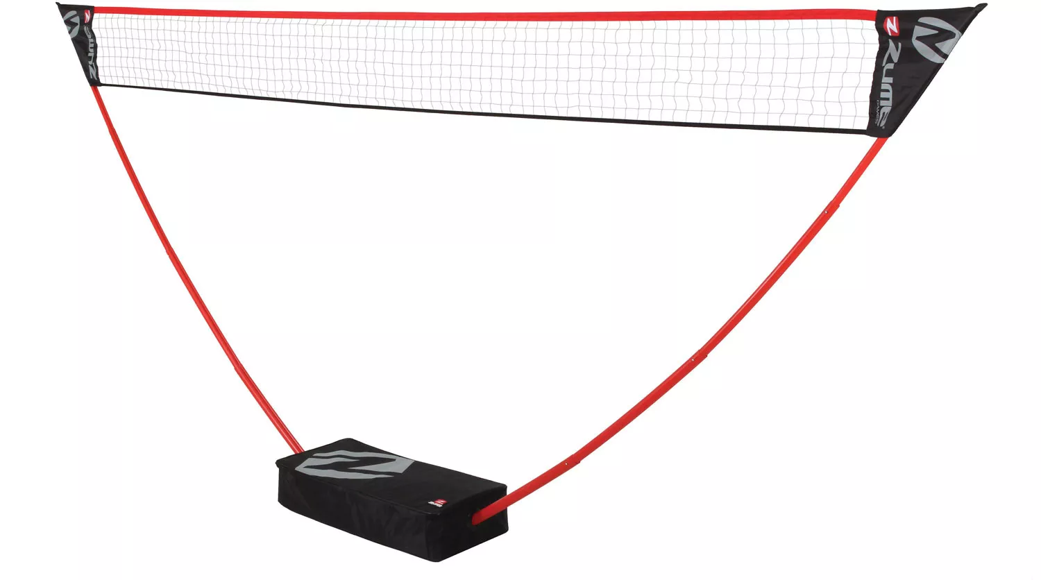 Get competitive at your next outdoor party with the Zume Games® Badminton Set. Perfect for backyard bashes or beach parties, this badminton set is highly portable and easy to set up anywhere. Featuring a regulation height net, it can be set up on any surface without tools or stakes. It’s equipped with 4 rackets for doubles or singles play. The 2 shuttlecocks ensure that you’ll always be ready to play. Take it on-the-go in its carrying case.